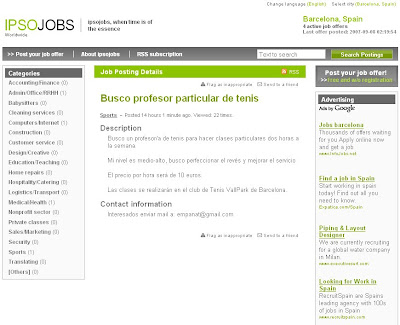 IPSOJOBS, te una orientació clarament global, inicialment traduït l'interface en català, castellà, anglés, xines i japones, permet introduïr o cercar ofertes de feina a Barcelona, Girona, Kyoto, Madrid, New York i Shanghai.