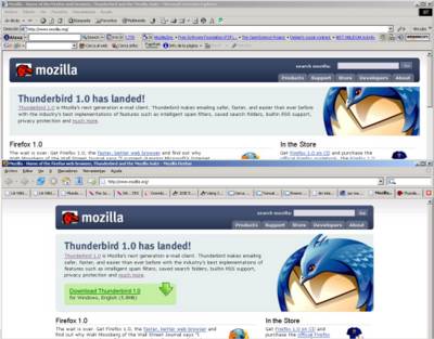 A la pàgina del download del Mozilla Thunderbird (el nou gestor de correu de Mozilla) hi ha un ús de les capes o el que sigui que fa que sigui incompatible amb el Internet Explorer.